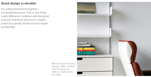 It is nothing trendy that might be out-of-date tomorrow. This is one of the major differences between well-designed products and trivial objects for a waste-producing society. Waste must no longer be tolerated.