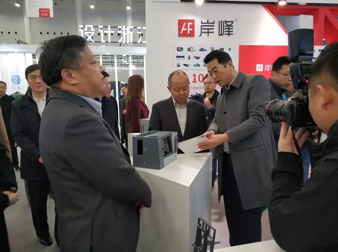 上海市經(jīng)濟(jì)和信息化委員會巡視員、上海市文化創(chuàng)意產(chǎn)業(yè)領(lǐng)導(dǎo)小組辦公室副主任陳躍華和中國工業(yè)設(shè)計(jì)研究院董事長李云虎一行來岸峰展臺進(jìn)行了現(xiàn)場交流指導(dǎo),聽取岸峰總經(jīng)理謝春雷對公司發(fā)展及案例介紹