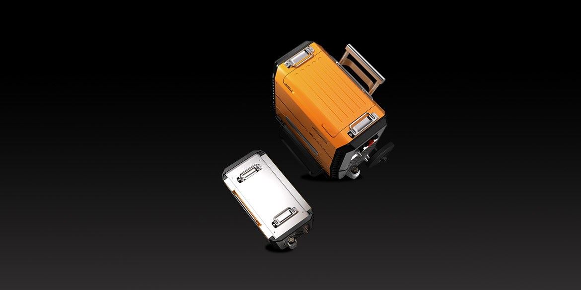 從功能外觀進行與其他產品的直接區別,大面積的黃色很直觀的便能與電緊密聯系在一起,黑色底座增加了機器運作的穩定感。