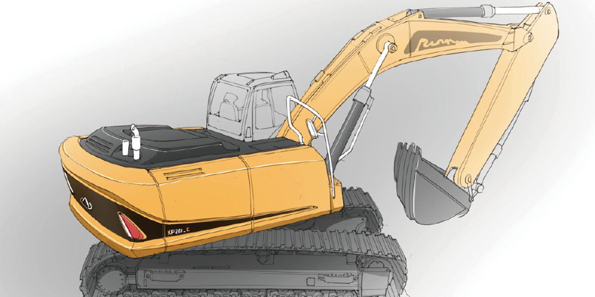 挖掘機繼承傳統(tǒng)的樣式樣貌,但色彩比例搭配有所創(chuàng)新。黃色與黑色的酷炫搭配,既能使操作工增加樂趣,也能使挖掘機本身具有一定的吸引力。