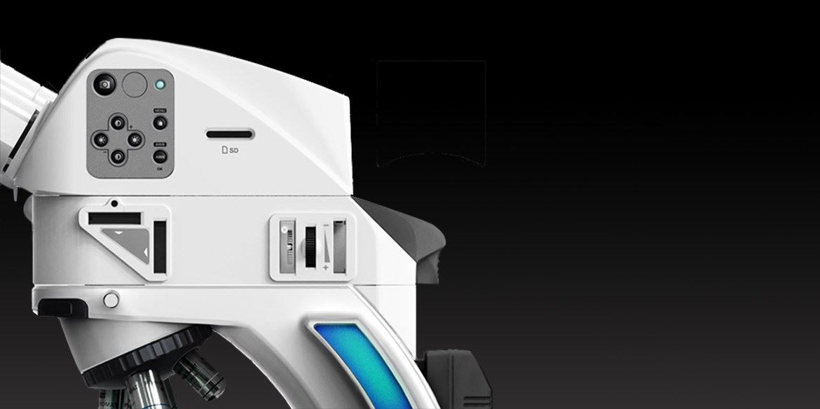 岸峰團(tuán)隊為卡爾蔡司獨家定制的這款顯微鏡中,主體不動的部分均用白色展示,干凈,簡潔。按鈕、旋轉(zhuǎn)、操作等部位用灰色,黑色區(qū)別標(biāo)示,更精準(zhǔn)。
